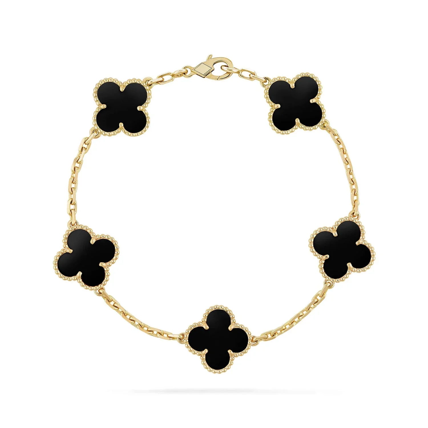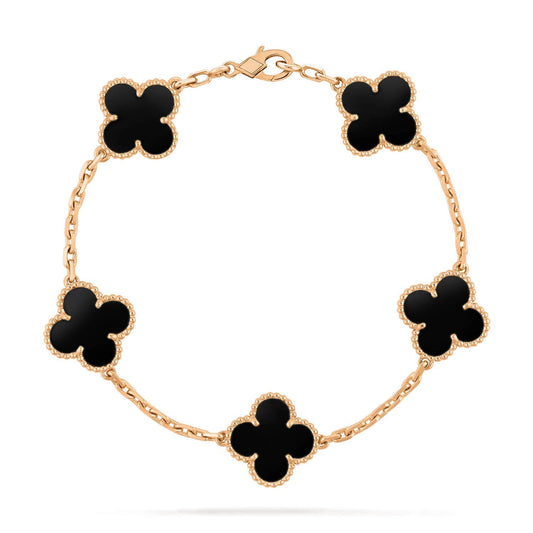 [baslovejewels]CLOVER 5 MOTIFS BLACK ONYX BRACELET