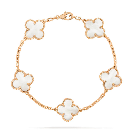 [baslovejewels]CLOVER 5 MOTIF WHITE MOP BRACELET